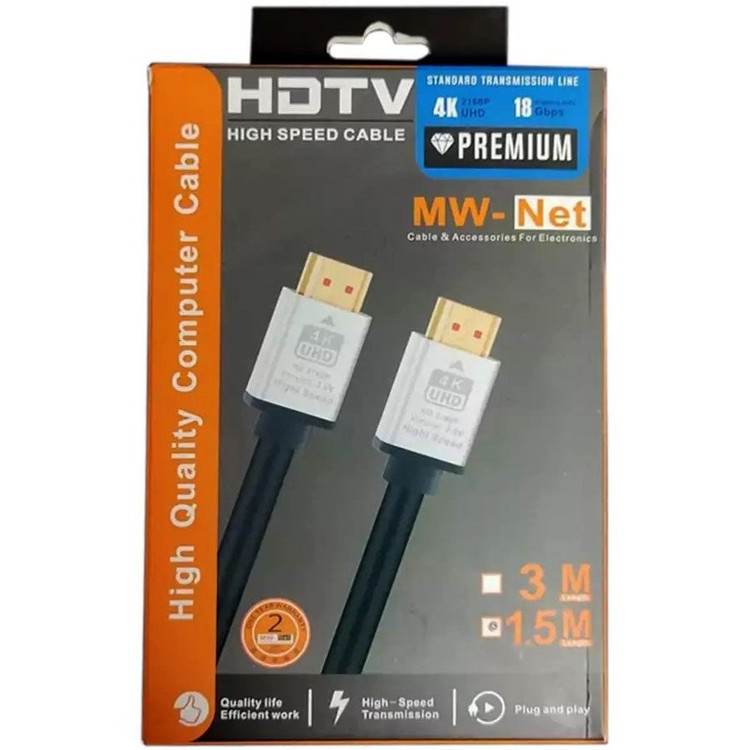 کابل HDMI 4K ام دبلیو نت طول 1.5 متر یکی از بهترین کابلهای HDMI برای انتقال تصاویر با کیفیت بالا است و این کابل قدرتمند قادر به انتقال تصاویر با رزولوشن 4K است و به صورت کامل سازگار با دستگاههای HD و Ultra HD میباشد.
