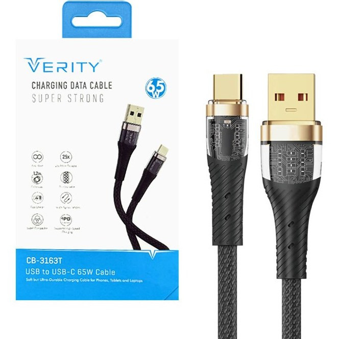 کابل شارژ تایپ سی TYPE C وریتی VERITY مدل CB 3163T متراژ 1.2 متر