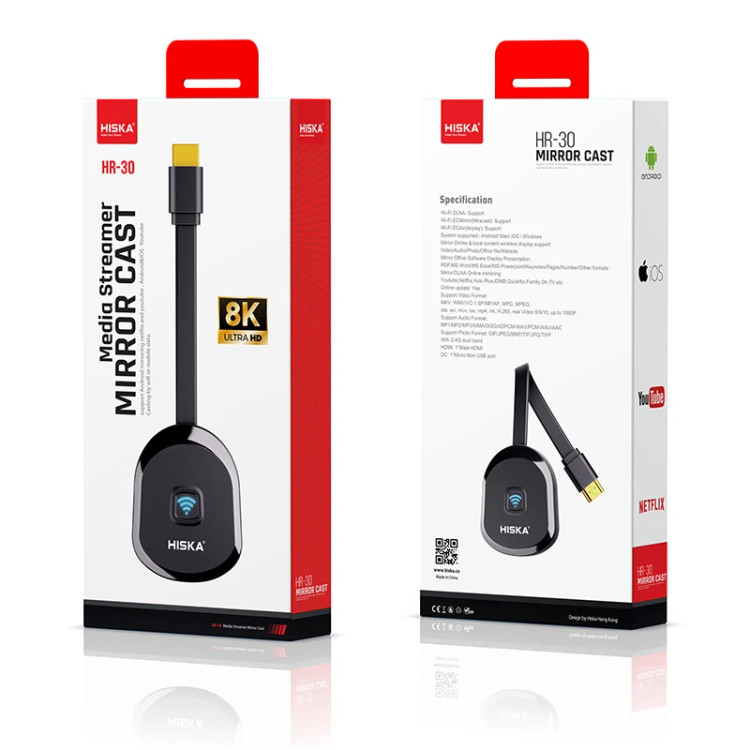دانگل وای فای هیسکا مدل HR-30 یک گجت حرفهای و کارآمد است که به شما اجازه میدهد انواع محتوا را به صورت بیسیم از دستگاههای هوشمند به تلویزیونهای HD منتقل کنید. این دانگل با پشتیبانی از وضوح فوقالعاده 8K، سازگاری با سیستمعاملهای متنوع و امکان استریم آنلاین ویدئو و موسیقی، تجربهای روان و لذتبخش را برای کاربران رقم میزند.