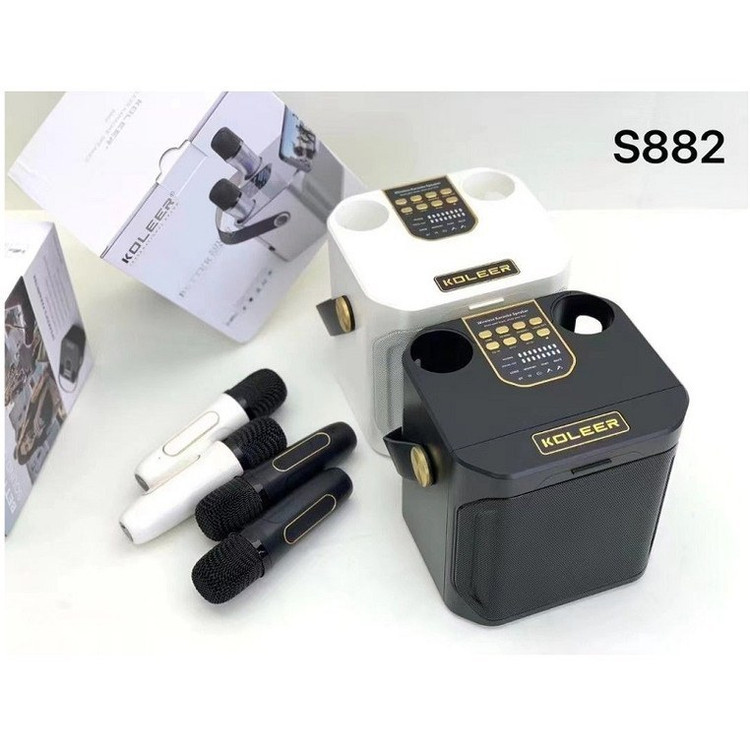 کلر 882 یک اسپیکر شارژی قدرتمند و جذاب می باشد. امروزه خرید اسپیکر شارژی مهمترین نیاز شما را برای دورهمی ها و مهمانی ها برطرف می کند. حالا در نظر بگیرید با خرید اسپیکر کلر S882 شما یک اسپیکر شارژی با 2 میکروفون بلوتوثی با قابلیت کارائوکه خریداری کرده اید. این دو میکروفون بی سیم دارای 4 حالت تون صدا بوده که جذابیت آن را چند برابر می کند. شما از طریق بلوتوث نسخه 5.3 ، فلش مموری، کارت حافظه میکرو SD و یا کابل AUX می توانید به این اسپیکر متصل شوید و از صدایی با حداکثر توان 30 وات rms بهره ببرید. تصور کنید برای آخر هفته به یک دورهمی دوستانه دعوت شده اید که می خواهید آهنگ مورد علاقه تان را برای دوستانتان پخش و با آن همخوانی کنید اما میکروفون ندارید! برای همین دلیل ساده باید برای خرید یک اسپیکر میکروفون دار اقدام کنید. این بلندگو کارائوکه دار در دو رنگ مشکی و نقره ای موجود می باشد.