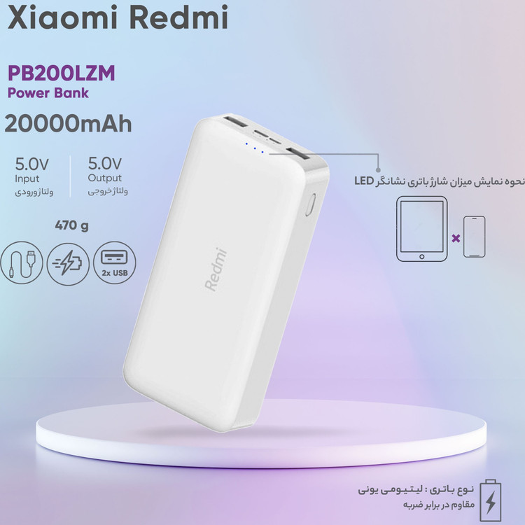 پاور بانک 20000 Redmi مدل PB200LZM گلوبال